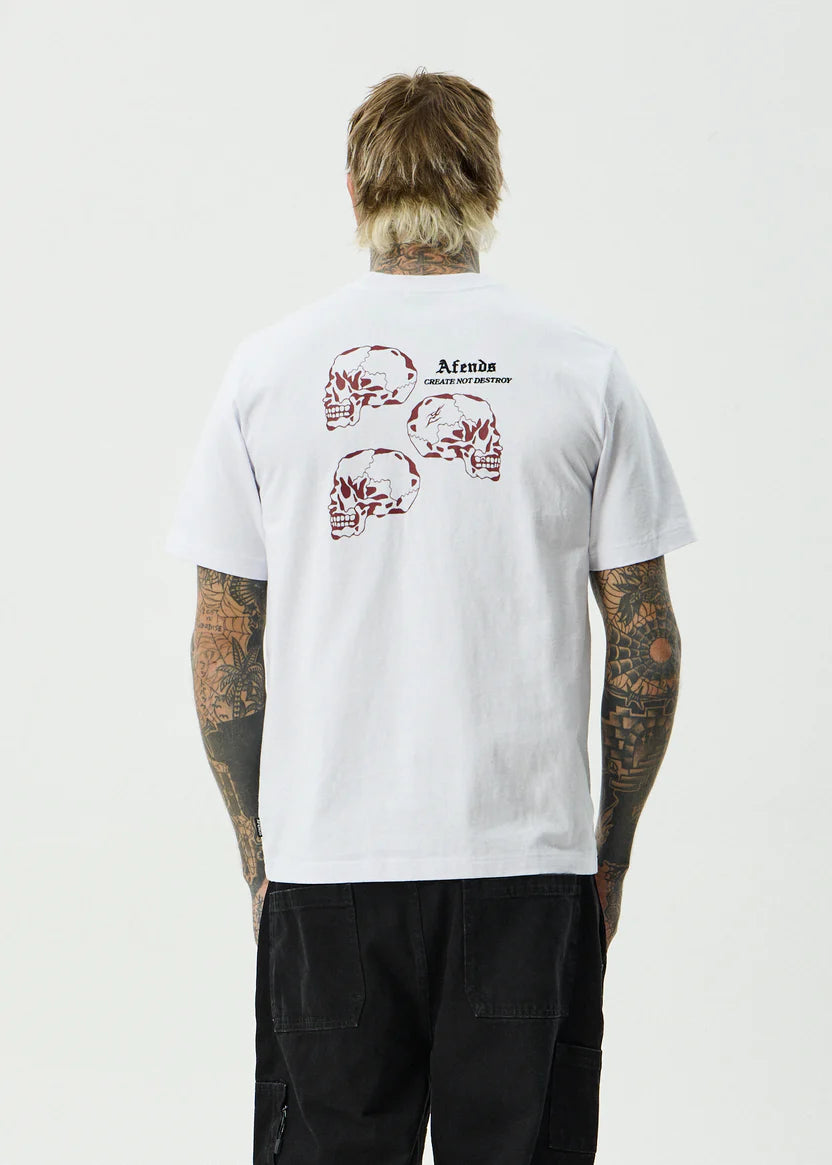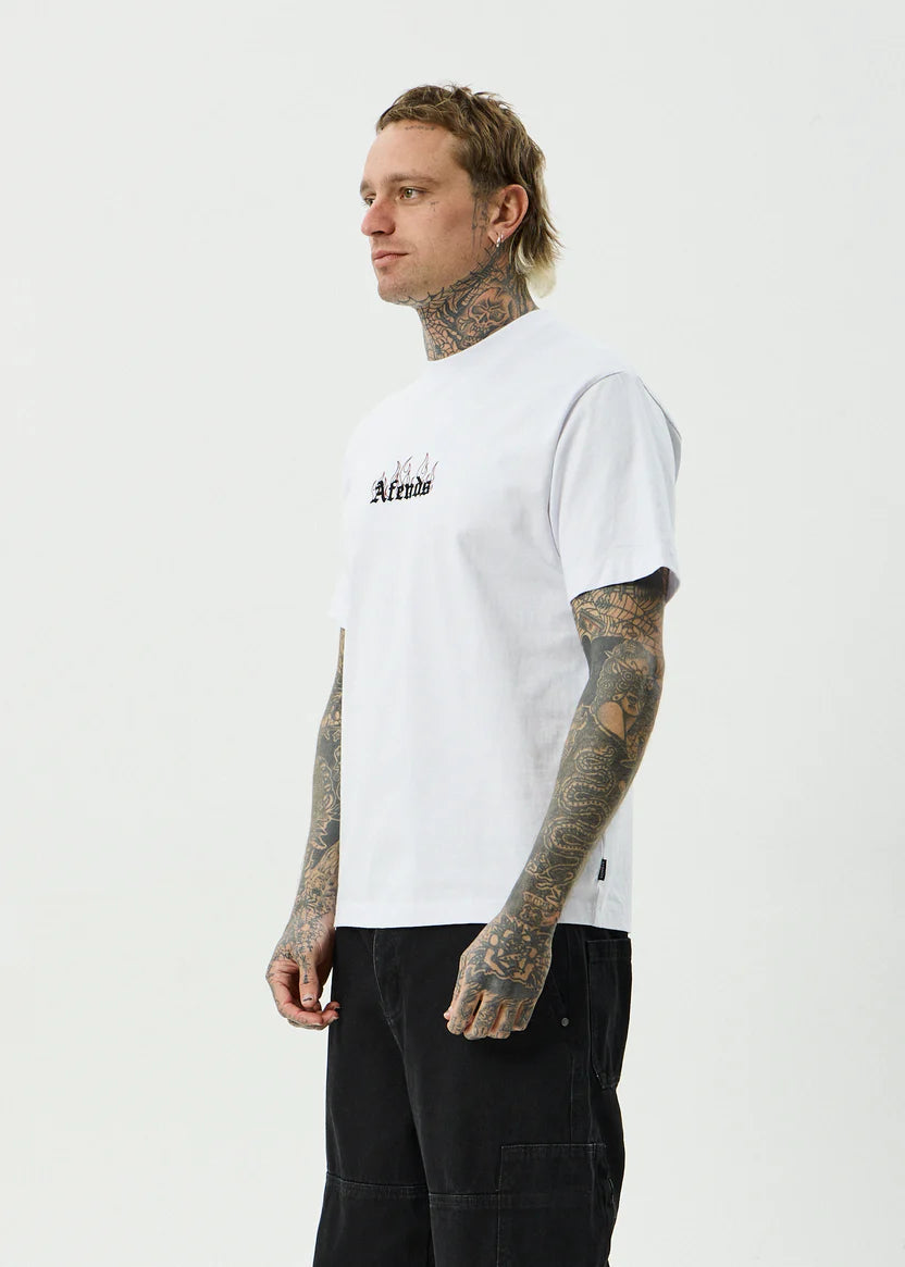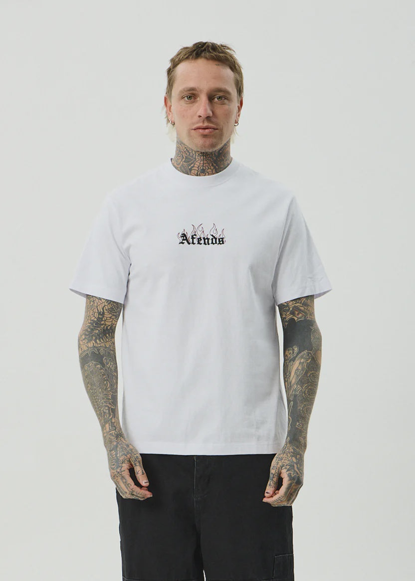Mens retro fit teeRibbed crew neckCracked and puff printed graphicEmbroideryHeavyweight fabricDry hand feelIn house artistTrue to size