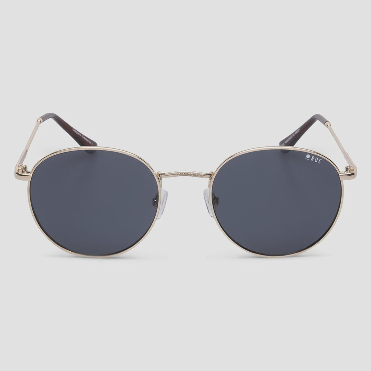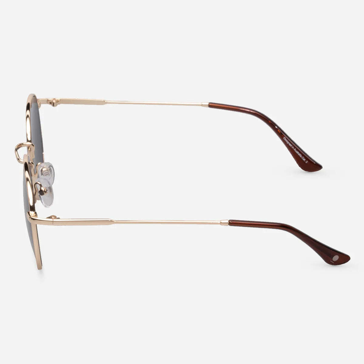 FRAME: Gold. LENS: Smoke. 100% UV Protection. Category 3