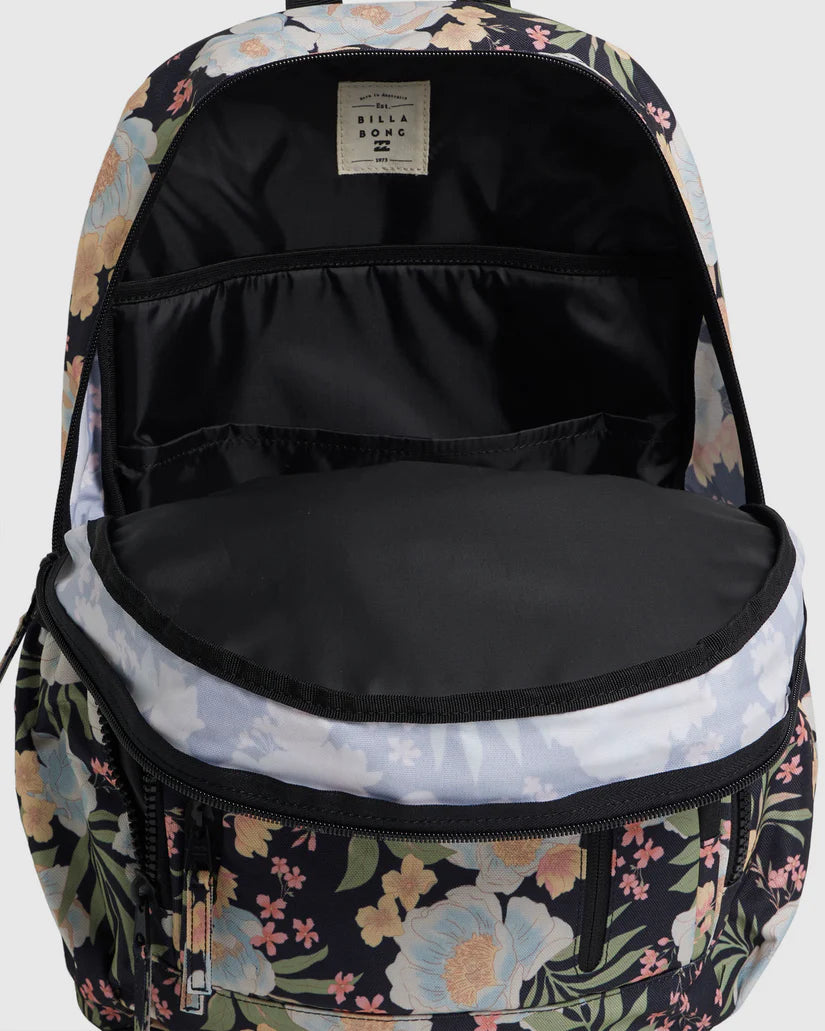 Compartments:Interior laptop sleeve, elasticated side water bottle pockets, interior pencil slots, zippered mesh pockets, several compartment pocket, vertical zippered front pocket