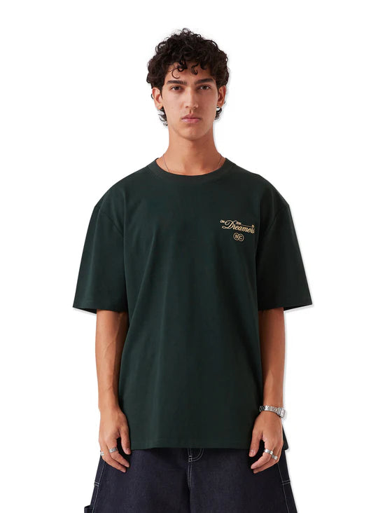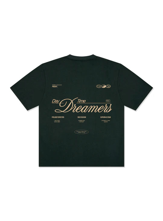 The DTD (Day Time Dreamers) Tee. Light puff print logos on front and back. 260g heavyweight cotton fabric, relaxed fit tee in standard length with thicker neckline.