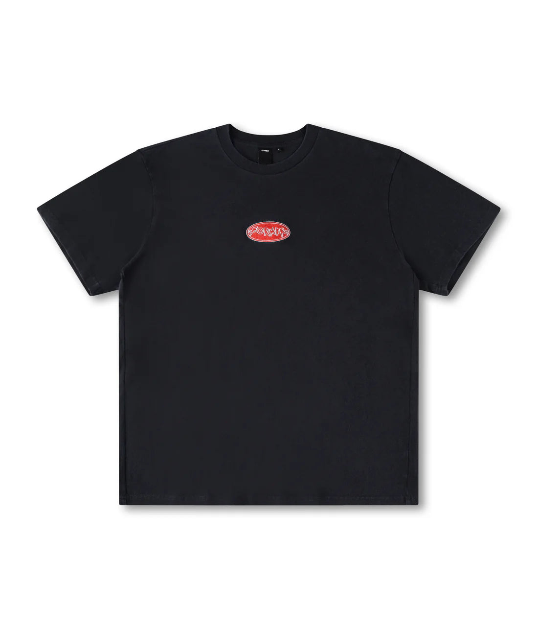 This garment is crafted from a premium 200gsm jersey cotton and tailored to the brand's standard Former t-shirt block, providing a relaxed and comfortable fit. It features a front graphic patch.