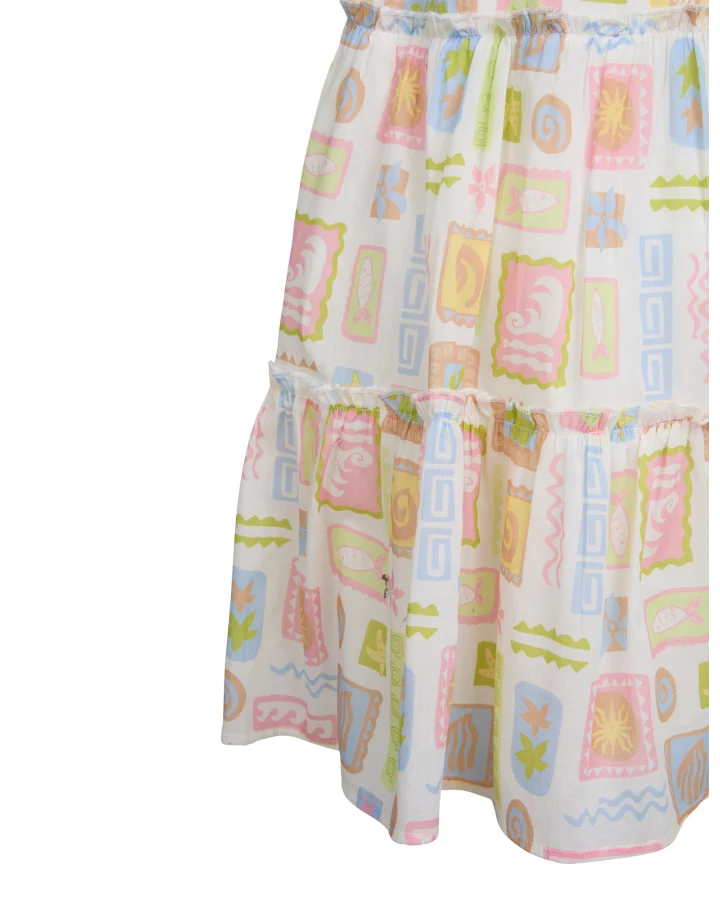 Stay cool and stylish this summer with the Matissie Tiered Dress by Eve Girl. Featuring a custom multi-colour yardage print on a breezy cotton fabrication, this style is fully lined and complete with adjustable straps, elastic top edge and tiered skirt panels. Pair back with sandals for the perfect everyday look.