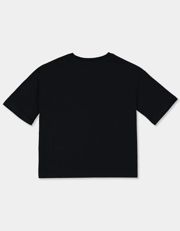 - Short-sleeve tee- Boxy fit- Enzyme wash- Rib neckband with back neck taping- Front chest graphic- Screen-printed back neck label