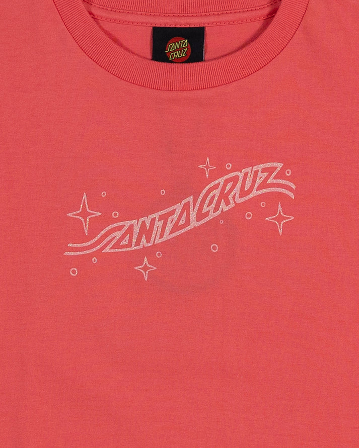Girls Santa Cruz cuffed short sleeve cropped t-shirt featuring glitter screen print of the Winged Moon Strip artwork.