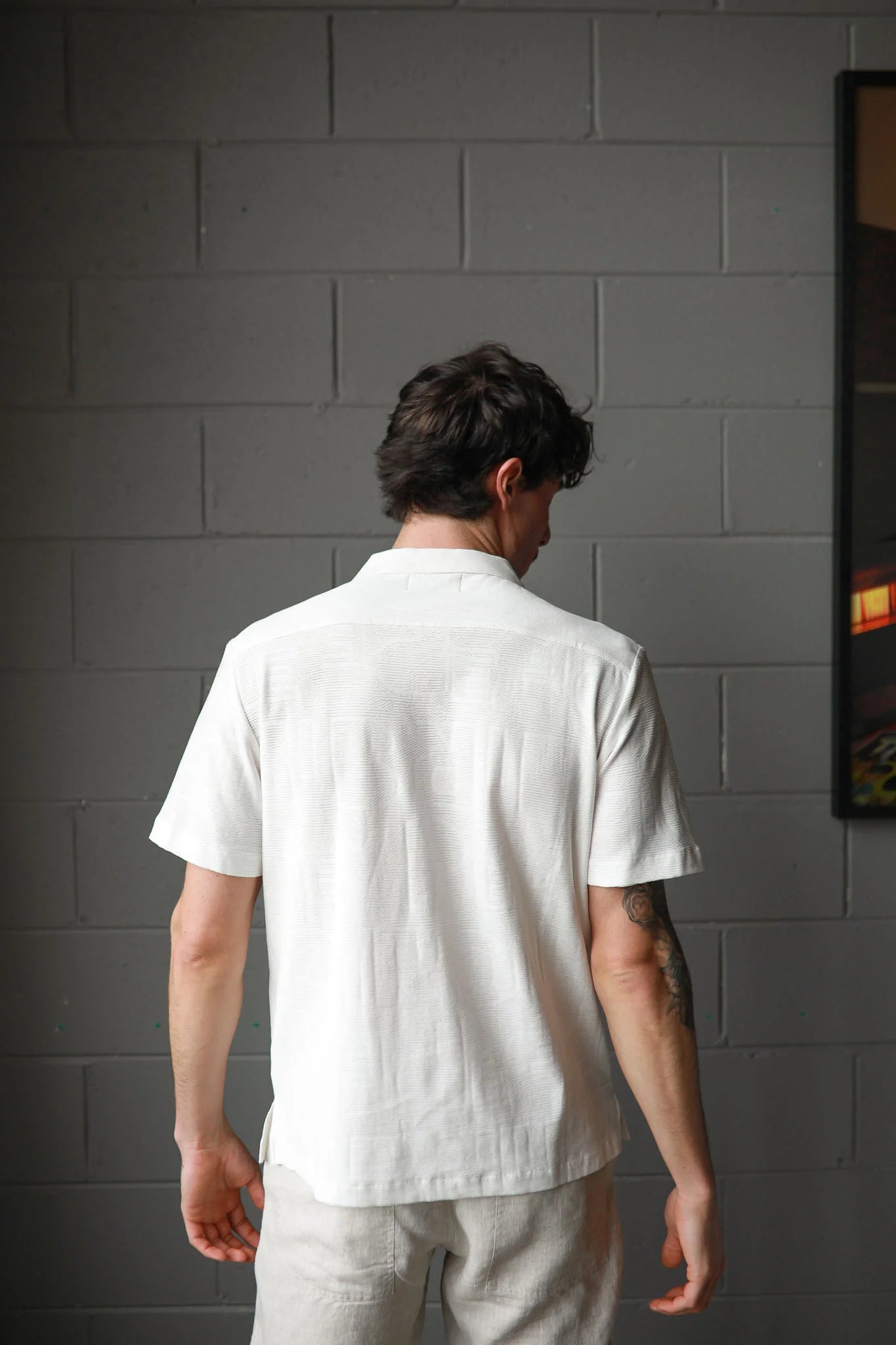 This unique knitted shirt is crafted from a cotton blend textured Alphabet design.