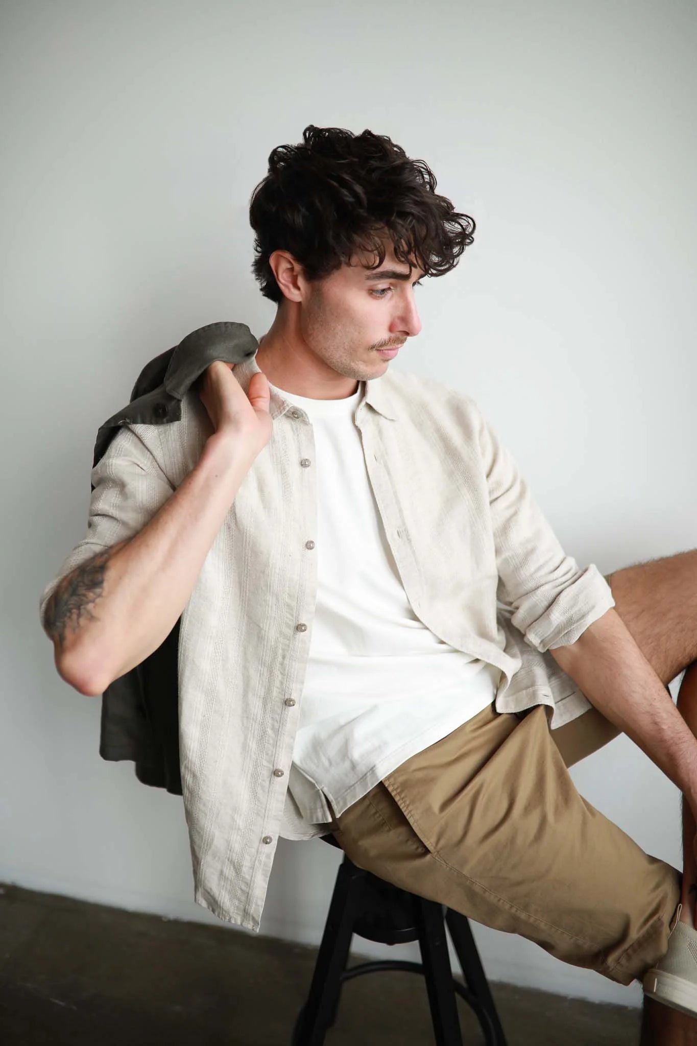 • Load image into Gallery viewer, James Harper Textured Self Stripe Shirt - Natural