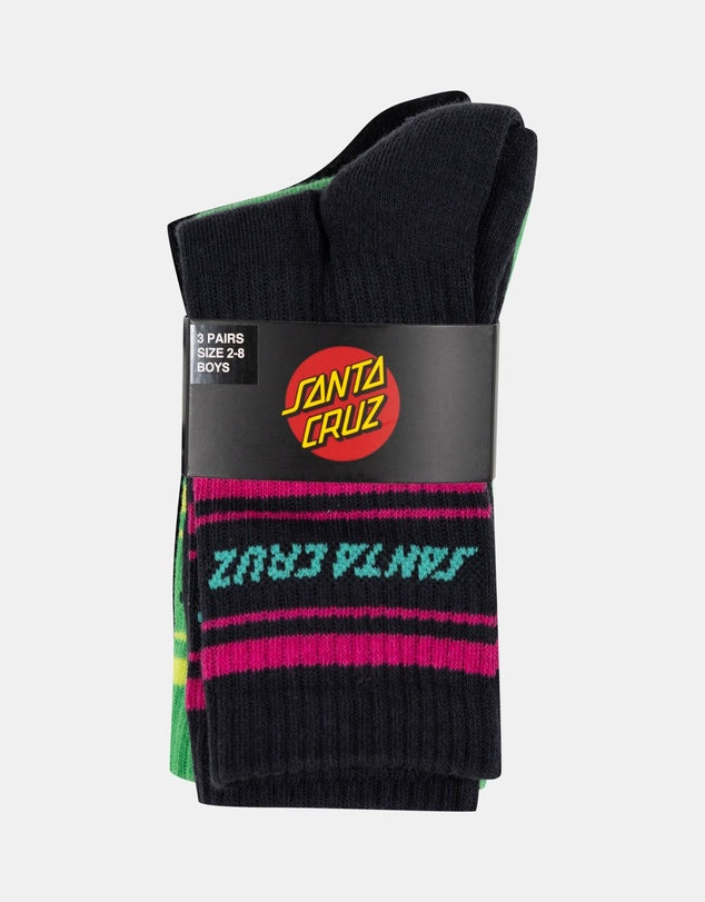Get ready to sock it to your sock drawer with this fun trio from Santa Cruz. This 3-pack crew sock set brings the style with its bold split-strip design across off-black, light green, and classic black. Perfect for adding a playful pop to your everyday rotation, whether you're hitting the skate park or just keeping things casual. Mix and match these crew-length socks to match your mood and outfit.