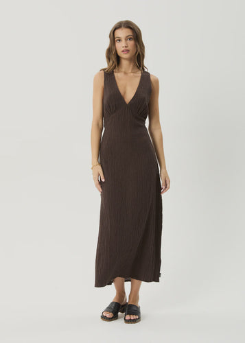Afends Focus Seersucker Maxi Dress - Coffee- Regular price