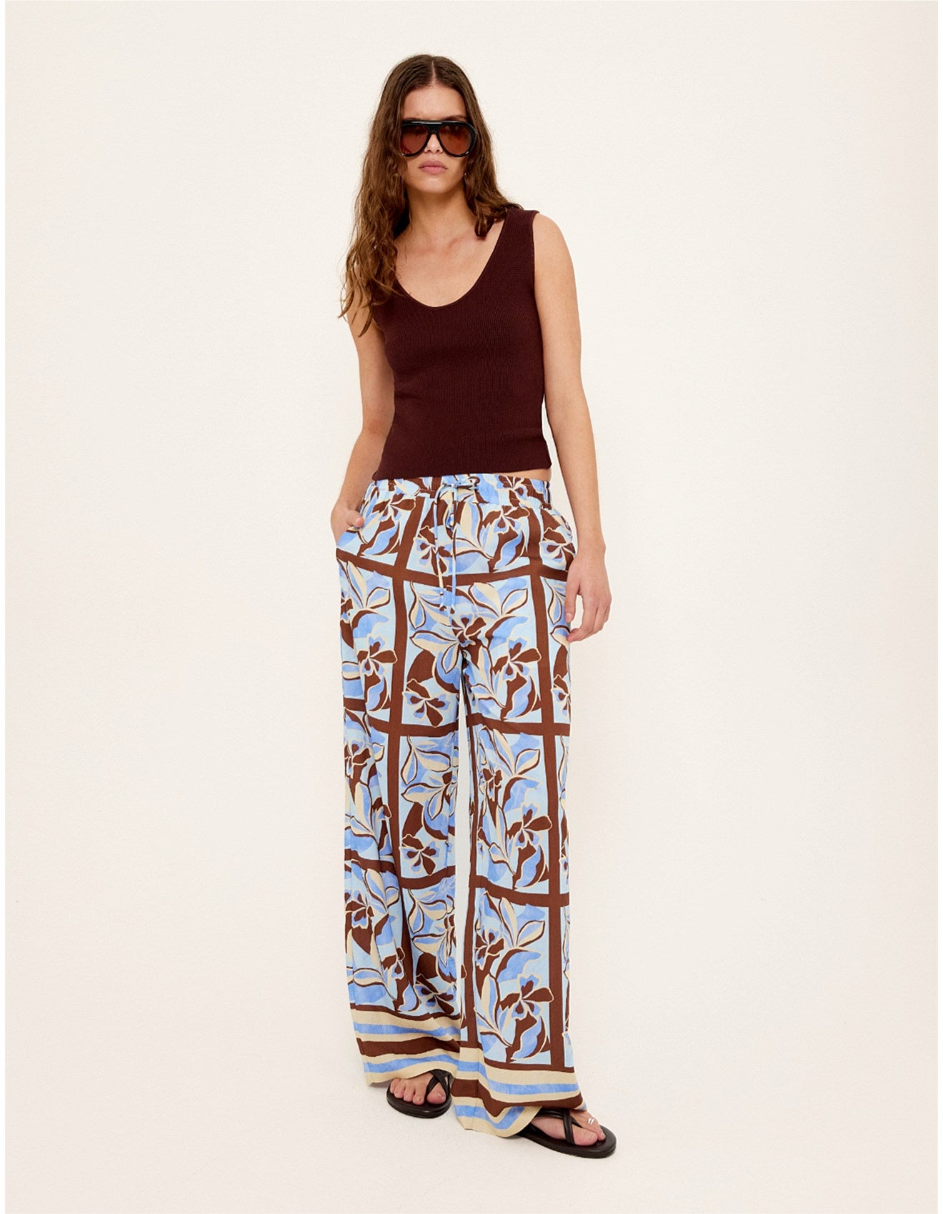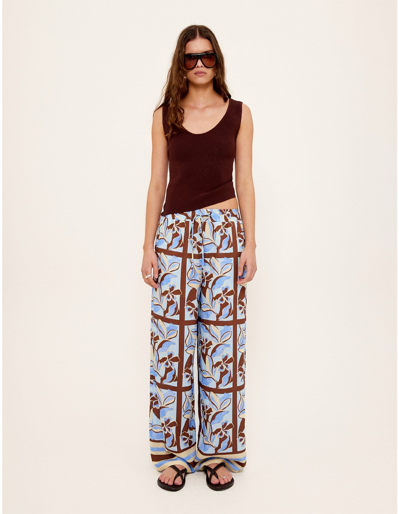 The Cielo Drawstring Pants bring relaxed sophistication to your summer wardrobe. Cut from a soft, fluid viscose blend, these wide-leg pants feature an elasticated waistband with drawstring tie and side pockets for effortless wear. The geometric abstract print in sky blue, chocolate and ivory adds a bold yet timeless edge - designed to make a statement wherever you go.