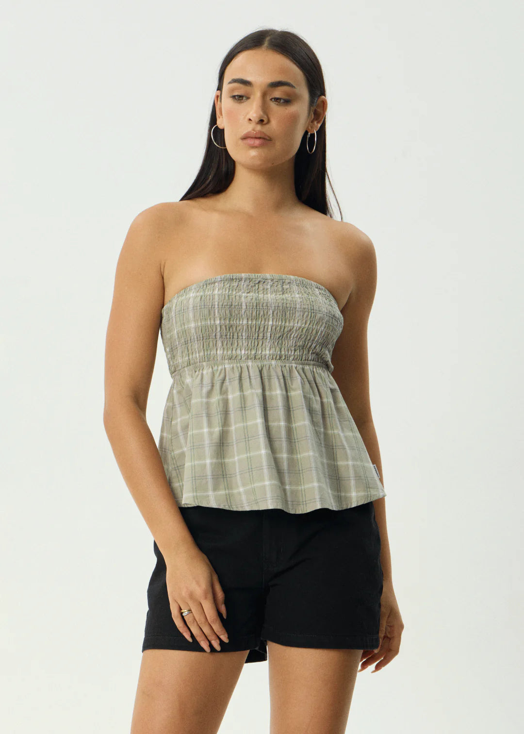 Super lightweight and breathable in 100% organic cotton, the 'Scout' collection is made for the warmer months ahead. Designed with an elasticated shirred bust panel and gathered peplum in a custom yarn dyed woven check.