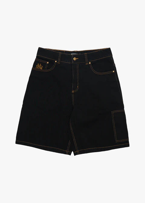 Afends Scorched Harper Denim Baggy Workwear Short 22' - Washed Black