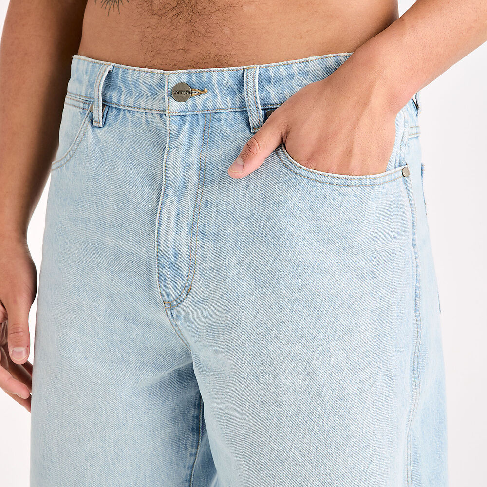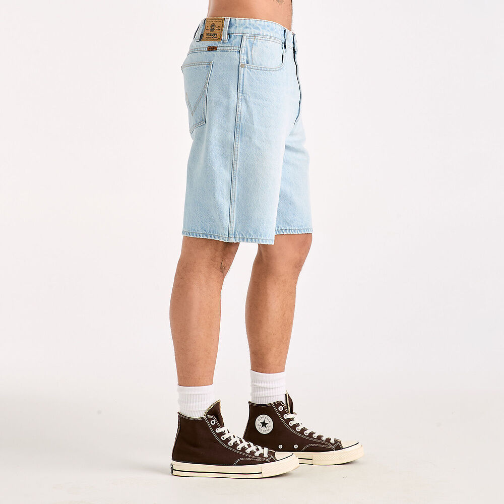 The Steezy short pays homage to the glory days of surf and skate. Designed to sit super loose, with a dropped rise and longer profile that cuts off under the knee. Made in a vintage sun-bleached blue wash.