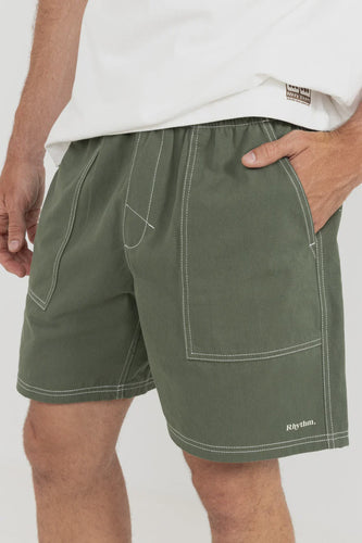 Rhythm Paisley Stripe Beach Short - Olive- Regular price