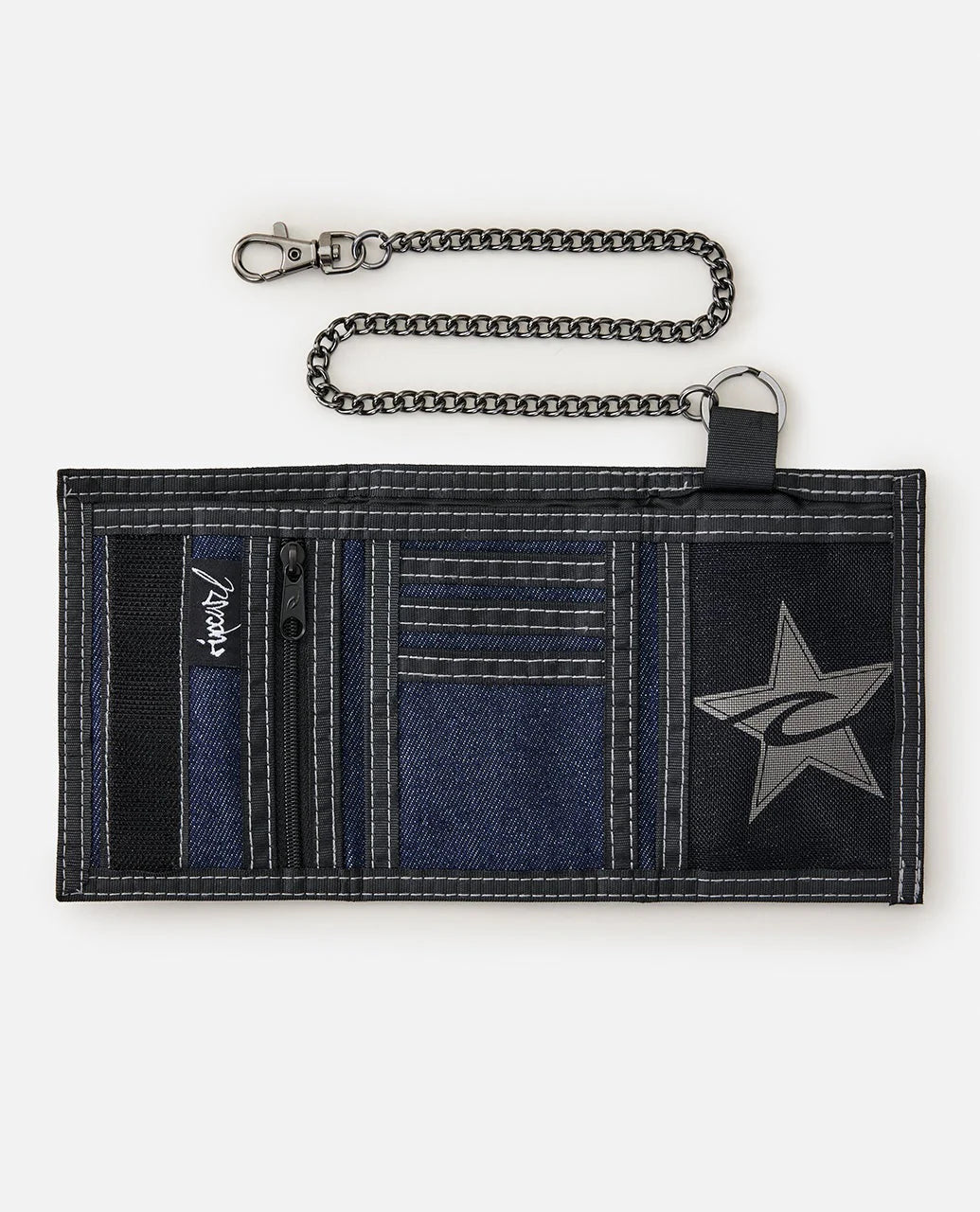 The Archive Denim Surf Wallet is crafted from durable 100% cotton denim, designed to keep your essentials secure with an ID window, multiple card slots, and a single note compartment. Its rugged style pairs perfectly with a laid-back coastal lifestyle.