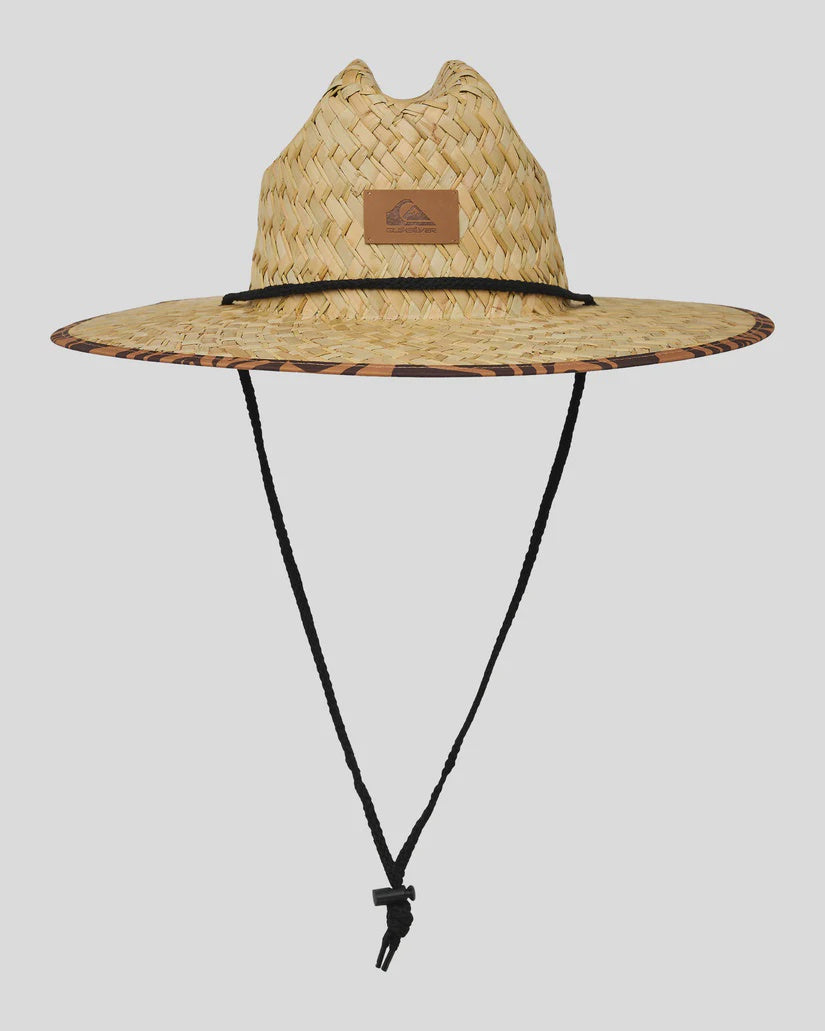 Product Type: Straw Lifeguard HatPrinted woven fabric under brim for added sun protectionFaux leather patch on center frontPlain weave strawMixed batch of underbrim prints across styleAdjustable draw cord with toggleFabric: 100% Straw