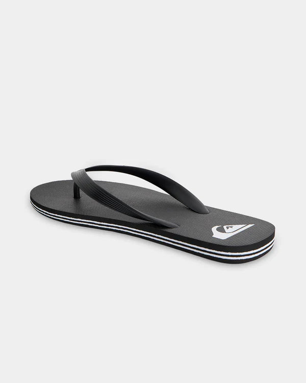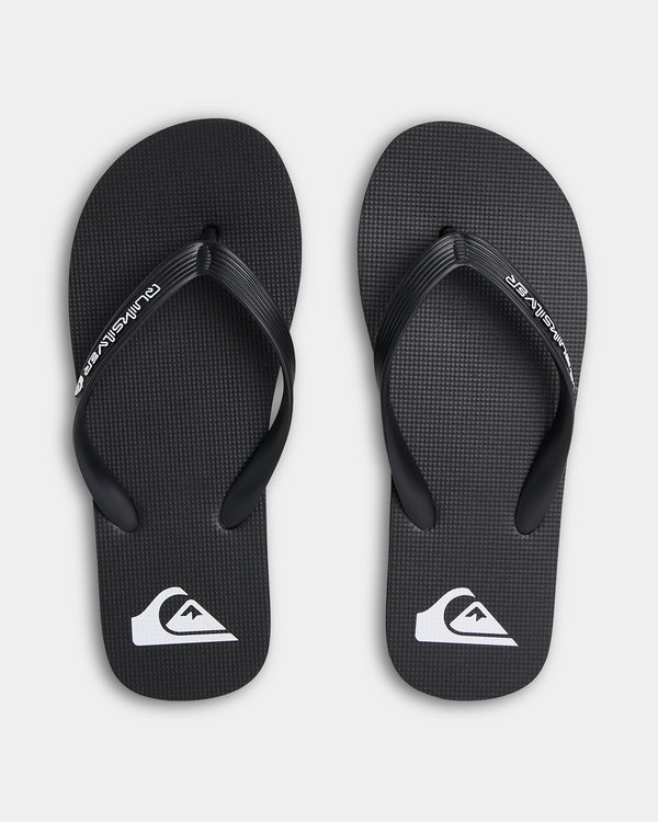 Product: Basic Sandal Flexible 3 point synthetic rubber strap with Quiksilver wordmark and fine mold Mountain Wave logo Slip resistant textured footbed Pop color pin lines in sidewall tying into colorway Re-engineered blown rubber outsole incorporates multi angled logo lugs for added traction