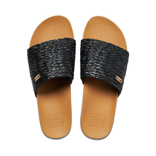 Reef Ladies Cushion Scout Braids Slides - Black/TanReef Ladies Cushion Scout Braids Slides - Black/Tan