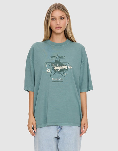 Thrills Drive Me Wild Oversized Tee - Green Coast