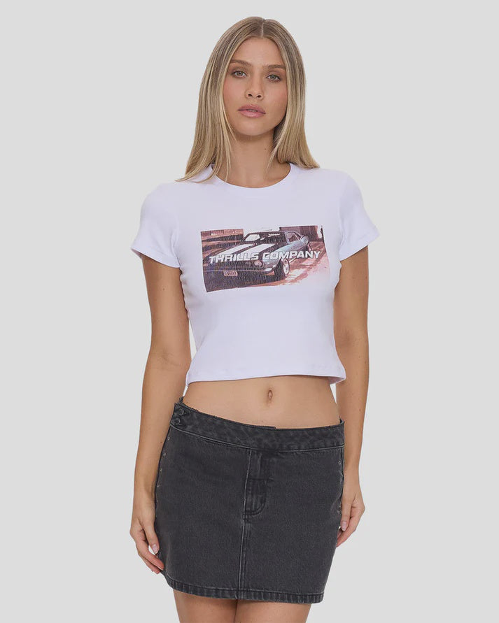 The Thrills Full Speed Mini T-Shirt delivers a clean, cropped silhouette with a classic crew neck and short sleeves. Lightweight and easy to style, this mini tee brings a modern streetwear edge to any outfit. Perfect for pairing with high-waisted denim or layering under oversized pieces, it’s a go-to staple for everyday wear.