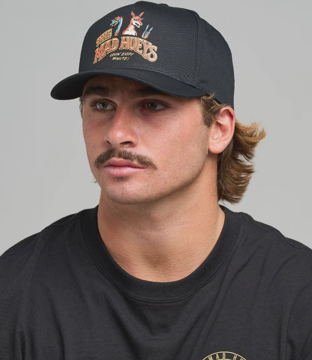 Bring the beach BBQ vibes wherever you go with the LOVING EVERY BBQ | TWILL SNAPBACK in Black. Featuring the iconic emu and kangaroo beach BBQ design, this black twill snapback is perfect for those who love summer, good mates, and even better food. Rugged, stylish, and packed with Hueys laid-back attitude—just the gear you need to keep the party rolling.