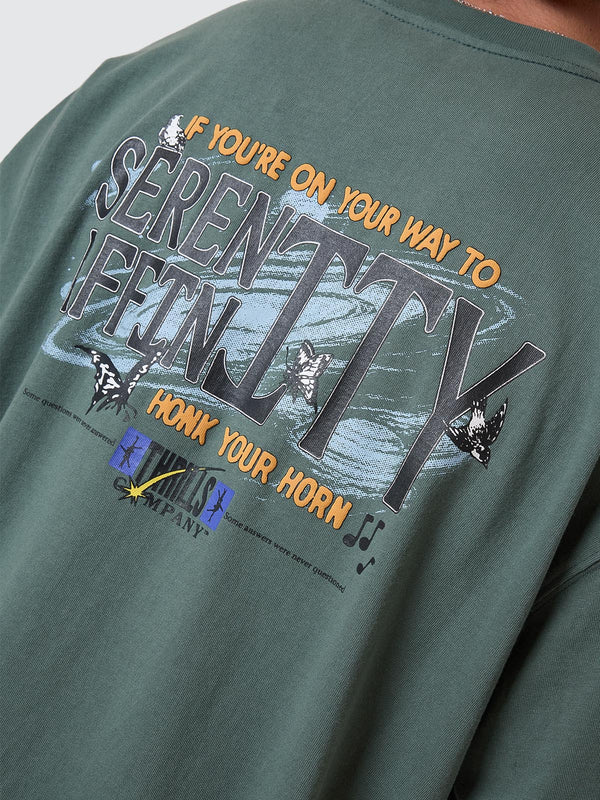 For those grounded in streetwear, the Serenity Affinity Box Fit Oversize Tee offers the perfect blend of street edge and cosmic minimalism. Made from heavyweight organic cotton t-shirt jersey, itÕs got that boxy, oversized cut for easy wear, a classic crew neckline, and a fresh colourway to add variety to your usual black oversized tee. The centre front graphic on the chest adds a calm contrast, giving this vintage graphic tee a futuristic twist. Looks killer with men's bootcut jeans or paired with the matching Serenity Affinity Slouch Hoodie for cooler nights.