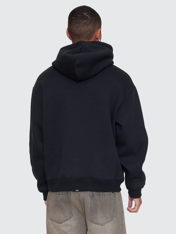 Comfort hits harder when it's cut right like the Stagger Slouch Pull On Cropped Hood in Washed Black, offering an easy, worn-in feel with a slouchy silhouette. Made from soft brushed fleece, it keeps things warm without the bulk, finished with a cropped length for a clean, modern edge. The centre-front print adds a hit of attitude, while the pouch pocket and drawcord hood keep this cropped hoodie practical for everyday wear. Perfect for layering, this Australian menswear is a go-to for cooler nights.