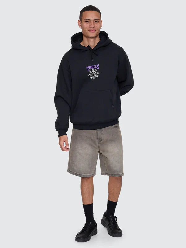 Thrills Stagger Slouch Pull On Cropped Hoodie - Washed Black
